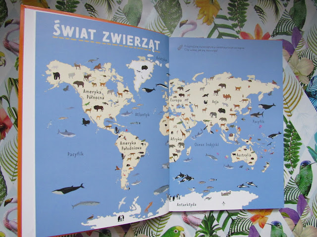 Księga niezwykłych zwierząt na pierwszy rzut oka może wyglądać jak zwykły atlas zwierząt albo książka popularnonaukowa. Dopiero po przeczytaniu podtytułu orientujemy się, że to coś więcej niż znane nam do tej pory książki o zwierzakach. Anna Olej-Kobus połączyła wiele elementów i stworzyła coś, z czym nigdy wcześniej nie mieliśmy do czynienia. Na początek mapa świata, na niej zaznaczono miejsca, w których żyją przedstawiciele poszczególnych gatunków. Przydadzą się bystre oczy, bo zwierząt jest naprawdę wiele i lepiej nie pominąć żadnego z nich. Kolejne strony to garść wiedzy teoretycznej i wyjaśnienie, czym są ssaki, ptaki, gady, płazy i ryby. Niedługie, ale ciekawe i przede wszystkim zrozumiałe dla młodych czytelników. Dalej znajdujemy zagadki, kolorowanki, rebusy i wyszukiwanki. Wszystkie ze zwierzętami w roli głównej. I oczywiście mnóstwo ciekawostek. O umaszczeniu poszczególnych gatunków, o ich wyjątkowych cechach i śladach, które zostawiają. Czytając tę książkę można się dowiedzieć, kto wykluwa się z jaja, kto żyje na pustyni, kto jest największy, kto najbrzydszy, a kto najniebezpieczniejszy. Ogrom wiedzy i do tego mnóstwo zabawy!